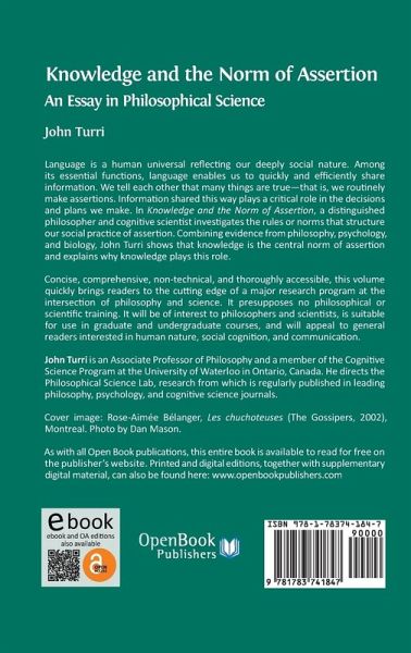 Language is a human universal reflecting our deeply social nature. Among its essential functions, language enables us to quickly and efficiently share information. We tell each other that many things are true-that is, we routinely make assertions. Information shared this way plays a critical role in the decisions and plans we make. In Knowledge and the Norm of Assertion, a distinguished philosopher and cognitive scientist investigates the rules or norms that structure our social practice of assertion. Combining evidence from philosophy, psychology, and biology, John Turri shows that knowledge is the central norm of assertion and explains why knowledge plays this role. Concise, comprehensive, non-technical, and thoroughly accessible, this volume quickly brings readers to the cutting edge of a major research program at the intersection of philosophy and science. It presupposes no philosophical or scientific training. It will be of interest to philosophers and scientists, is suitable for use in graduate and undergraduate courses, and will appeal to general readers interested in human nature, social cognition, and communication.