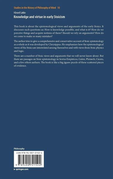 The author tries to give a comprehensive and conservative account of Stoic epistemology as a whole as it was developed by Chrysippus. He emphasizes how the epistemological views of the Stoics are interrelated among themselves and with views from Stoic physics and logic.