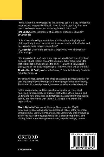 Max Boisot writes clearly and in accessible language providing some of the key building blocks which are needed for a theory of knowledge assets. He develops a powerful conceptual framework, the Information-Space or I-Space, for exploring the way knowledge flows within and between organizations. This framework will enable managers and students to explore and understand how knowledge and information assets differ from physical assets, and how to deal with them at a strategic level