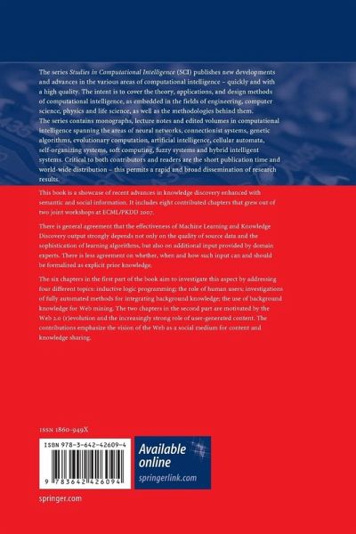 The six chapters in the first part of the book aim to investigate this aspect by addressing four different topics: inductive logic programming; the role of human users; investigations of fully automated methods for integrating background knowledge; the use of background knowledge for Web mining. The two chapters in the second part are motivated by the Web 2.0 (r)evolution and the increasingly strong role of user-generated content. The contributions emphasize the vision of the Web as a social medium for content and knowledge sharing.