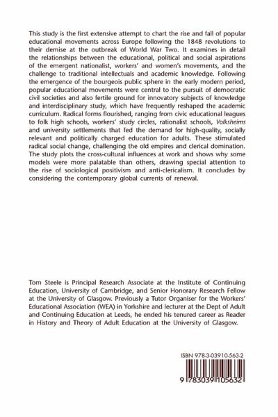 This study is the first extensive attempt to chart the rise and fall of popular educational movements across Europe following the 1848 revolutions to their demise at the outbreak of World War Two. It examines in detail the relationships between the educational, political and social aspirations of the emergent nationalist, workers' and women's movements, and the challenge to traditional intellectuals and academic knowledge. Following the emergence of the bourgeois public sphere in the early modern period, popular educational movements were central to the pursuit of democratic civil societies and also fertile ground for innovatory subjects of knowledge and interdisciplinary study, which have frequently reshaped the academic curriculum. Radical forms flourished, ranging from civic educational leagues to folk high schools, workers' study circles, rationalist schools, Volksheims and university settlements that fed the demand for high-quality, socially relevant and politically charged education for adults. These stimulated radical social change, challenging the old empires and clerical domination. The study plots the cross-cultural influences at work and shows why some models were more palatable than others, drawing special attention to the rise of sociological positivism and anti-clericalism. It concludes by considering the contemporary global currents of renewal.