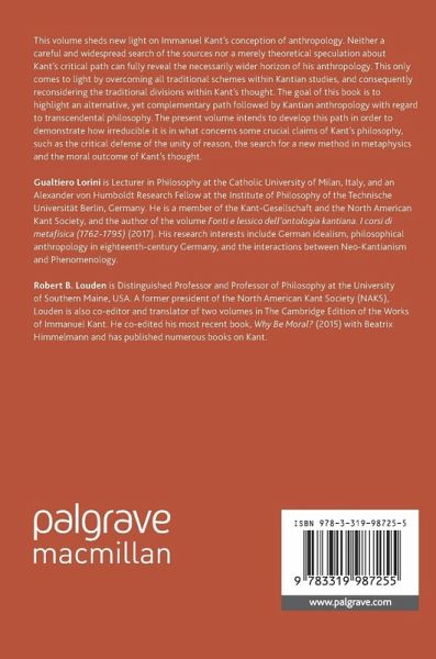 This volume sheds new light on Immanuel Kant's conception of anthropology. Neither a careful and widespread search of the sources nor a merely theoretical speculation about Kant's critical path can fully reveal the necessarily wider horizon of his anthropology. This only comes to light by overcoming all traditional schemes within Kantian studies, and consequently reconsidering the traditional divisions within Kant's thought. The goal of this book is to highlight an alternative, yet complementary path followed by Kantian anthropology with regard to transcendental philosophy. The present volume intends to develop this path in order to demonstrate how irreducible it is in what concerns some crucial claims of Kant's philosophy, such as the critical defense of the unity of reason, the search for a new method in metaphysics and the moral outcome of Kant's thought.