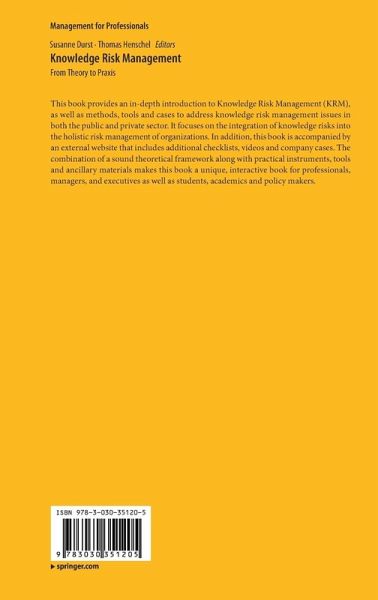 This book provides an in-depth introduction to knowledge risk management (KRM) as well as methods, tools and cases to address knowledge risk management issues in both the public and private sector. It focuses on the integration of knowledge risks into the holistic risk management of organizations. In addition, this book is accompanied by an external website that includes additional checklists, videos and company cases. The combination of a sound theoretical framework along with practical instruments, tools and ancillary materials makes this book a unique, interactive book for professionals, managers, and executives as well as students, academics and policy makers.