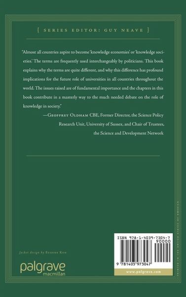 'Almost all countries aspire to become 'knowledge economies' or 'knowledge societies.' The terms are frequently used interchangeably by politicians. This book explains why the terms are quite different, and why this difference has profound implications for the future role of universities in all countries throughout the world. The issues raised are of fundamental importance and the chapters in this book contribute in a masterly way to the much needed debate on the role of knowledge in society' - Geoffrey Oldham CBE, Former Director, the Science Policy Research Unit, University of Sussex, and Chair of Trustees, the Science and Development Network