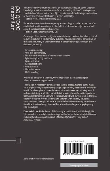 'This new book by Duncan Pritchard is an excellent introduction to the theory of knowledge, as well as a useful resource for understanding Pritchard's own important view. Pritchard's treatment of the subject area is masterful, achieving a combination of clarity and efficiency that is rarely seen in philosophy.'