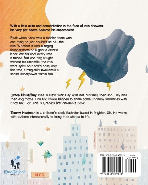 With a little calm and concentration in the face of rain showers, his very pet peeve became his superpower! Back when Knox was a toddler, there was one thing he just couldn't stand-the rain. Whether it was a raging thunderstorm or a gentle drizzle, Knox lost his cool every time it rained. But one day, caught without his umbrella, the rain went splat! on Knox's nose, only this time, it magically awakened a secret superpower within him . . . Now, when raindrops fall, Knox is able to talk to animal friends, big and small! Knox & The Magic Raindrops is an amusing, tender story perfect for any child who needs a little magic in their life, especially in the face of life's frustrations. Knox's tale will help show children that their fears (or pet peeves!) don't have to rule them, turning overwhelming feelings into enchanting adventures.