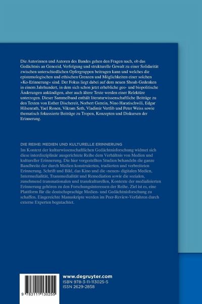 Die Autorinnen und Autoren dieses Bandes gehen der Frage nach, ob ob das Gedächtnis an Genozid, Verfolgung und strukturelle Gewalt zu einer Solidarität zwischen unterschiedlichen Opfergruppen beitragen kann, und welche die epistemologischen und ethischen Grenzen und Möglichkeiten einer solchen "Ko-Erinnerung" sind. Der Fokus liegt dabei auf dem neuen Shoahgedenken in einem Jahrhundert, in dem sich schon jetzt erhebliche geo- und biopolitische Änderungen ankündigen, aber auch ältere Texte werden einer Relektüre unterzogen.
