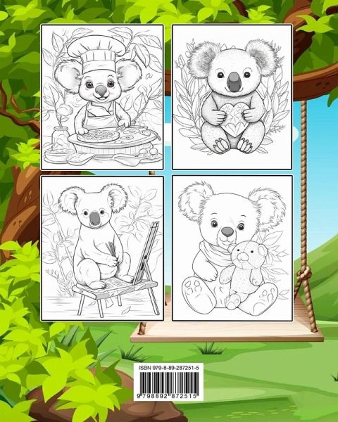 Does your child love koalas? Then this book is perfect for your child! Your little cutie will be thrilled with this fun koala coloring book. This coloring book is perfect for kids who want to create the perfect world full of adorable and cute koala motifs! Why you'll love this book: ¿ Relaxing coloring pages: Each page will help your child relax and enjoy themselves, so all their responsibilities will fade away. ¿ Beautiful illustrations: We've included 40 pictures so your kids can express their creativity and create masterpieces. ¿ Great for ages 4+: Your child can color each page however they like, and there's no wrong way to color. ¿ Large coloring book: this book has a large 8.5x11 format, so your child can fully express their creativity without running out of space. Do you know someone who loves koala? Make them smile by giving them this book as a wonderful birthday gift or just to make them happy.
