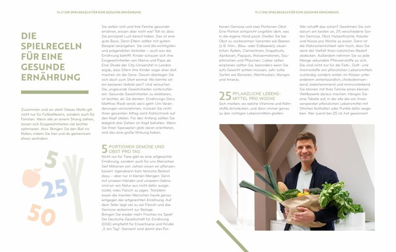 Was macht satt und fit? Wie werden Kinder zu neugierigen Essern? Und welche Lebensmittel haben "Superkräfte"? Thomas Müller und Ernährungs-Doc Riedl geben Antworten auf diese und andere Fragen und erklären leicht verständlich alles, was man über gesunde Ernährung wissen sollte. Dazu gibt das Power-Duo viele nützliche Tipps und präsentiert mehr als 50 alltagstaugliche Rezepte, die ratzfatz auf dem Tisch stehen und der ganzen Familie schmecken. So gelingt gesund kochen spielend leicht!