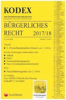Der Kodex Bürgerliches Recht in der 52. Auflage mit dem Stand 1. 9. 2017 berücksichtigt insbesondere: