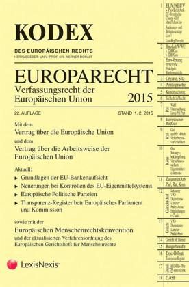 Der Kodex Europarecht - Verfassungsrecht der Europäischen Union 2015 - in der 21. Auflage mit dem Stand X.2015 berücksichtigt insbesondere: