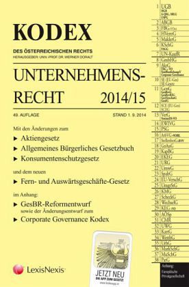 Der Kodex Unternehmensrecht in der 49. Auflage mit dem Stand 1.9.2014 berücksichtigt insbesondere: