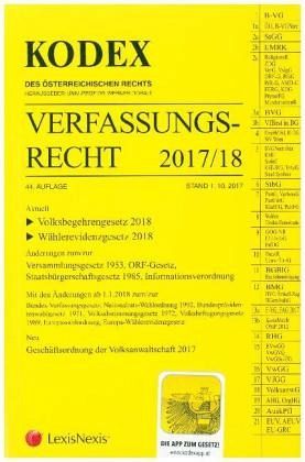 Der Kodex Verfassungsrecht in der 44. Auflage mit dem Stand 1. 10. 2017 enthält: