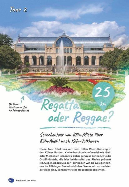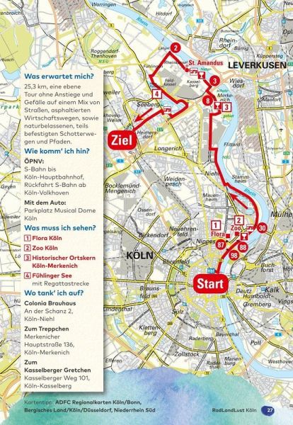 30 Rundtourenauf den landschaftlich schönsten Strecken zu den bedeutendsten Sehenswürdigkeiten der Region.Ein bestens ausgebautes Radwegenetz, Sehenswürdigkeiten und Einkehrmöglichkeiten im Überfluss, dazu eine gesellige und stets gut gelaunte Grundstimmung: das ist das Rheinland - eine absolut perfekte Rad-Region!Obwohl es eine der am dichtestebn besiedelten Regionen Deutschlands ist, können Sie sich auf unvergleichliche Radel-Erlebnisse freuen. Rund um die rheinische Metropole Köln rollen Sie auf Flussradwegen entlang von Rhein, Sieg, Agger und Erft, entdecken autorfreie Bahntrassen im Bergischen Land, erfrischen sich an Talsperren und kurbeln mit High Speed entlang einer ehemaligen Kohlenbahn.Alle Touren beginnen an Bahnhöfen und verfügen über Parkplätze in unmittelbarer Umgebung, so dass Sie bequem mit dem Auto oder mit der Bahn anreisen können.Auf Wohnmobilstellplätze an den Strecken wird hingewiesen.zusätzliches kostenfreies Online-Angebot:gpx-Tracks der Touren zum DownloadUnd das sind die Touren: 1 von Köln-Lövenich über Brauweiler 2 von Köln-Mitte nach Köln-Fühlingen 3 von Köln Worringen über Zons 4 von Düsseldorf über Neuss 5 von Kaarst über Meerbusch 6 von Tüschenbroich über Hombroich 7 von Grevenbroich über Bedburg 8 von Bedburg über Bergheim 9 von Jülich über Düren10 von Euskirchen über Satzvey11 von Hürth nach Weilerswist12 von Erftstadt nach Rheinbach13 von Bonn-Regierungsviertel über Bad Godesberg14 von Bornheim über Wesseling15 von Brühl über Wesseling16 von Köln-Rodenkirchen über Köln-Hahnwald17 von Köln-Porz-Zündorf über Niederkassel18 von Siegburg über Graurheindorf19 von Oberdollendorf über Heisterbach20 von Windeck nach Hennef21 von Siegburg über Wahnbach-Talsperre22 von Troisdorf über Altenrath23 von Rösrath über Bensberg24 von Engelskirchen über Lindlar25 von Gummersbach nach Olpe26 von Lennep nach Marienheide27 von Lennep nach Opladen28 von Leverkusen-Morsbroich über Altenberg nach Opladen29 von Solingen nach Opladen'30 von Solingen nach Wuppertal-Oberbarmenmit Ortsbeschreibungen vonKöln, Düsseldorf, Neuss, Bonn, Siegburg, Lennep und Solingen