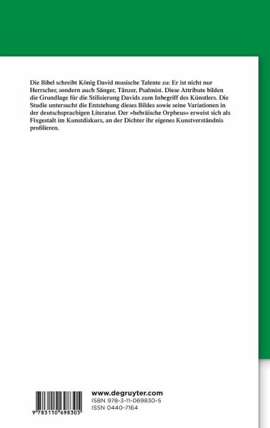 Die Bibel schreibt König David musische Talente zu: Er ist nicht nur Herrscher, sondern auch Sänger, Tänzer, Psalmist. Diese Attribute bilden die Grundlage für die Stilisierung Davids zum Inbegriff des Künstlers. Die Studie untersucht die Entstehung dieses Bildes sowie seine Variationen in der deutschsprachigen Literatur. Der "hebräische Orpheus" erweist sich als Fixgestalt im Kunstdiskurs, an der Dichter ihr eigenes Kunstverständnis profilieren.