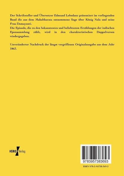 Der Schriftsteller und Übersetzer Edmund Lobedanz präsentiert im vorliegenden Band die aus dem Mahabharata entnommene Sage über König Nala und seine Frau Damayanti.