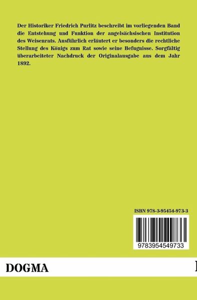 Der Historiker Friedrich Purlitz beschreibt im vorliegenden Band die Entstehung und Funktion der angelsächsischen Institution des Weisenrats. Ausführlich erläutert er besonders die rechtliche Stellung des Königs zum Rat sowie seine Befugnisse. Sorgfältig überarbeiteter Nachdruck der Originalausgabe aus dem Jahr 1892.