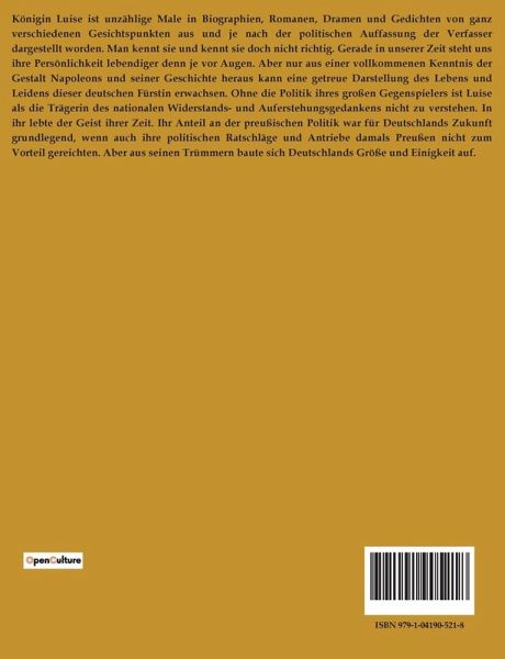 Der Text beschreibt eine Szene aus dem Jahr 1806 im Schlosse Sanssouci, in der Königin Luise von Preußen mit ihren Söhnen, den Prinzen Friedrich Wilhelm und Wilhelm, dargestellt wird. Die Darstellung zeigt ein Bild des familiären Glücks, das jedoch von den drohenden politischen Unruhen überschattet wird. Königin Luise, eine junge und schöne Mutter, unterbricht das Schreiben eines Briefes, um sich ihren spielenden Söhnen zuzuwenden. Die Prinzen sind in ein Spiel vertieft, das den Untergang einer feindlichen Macht symbolisiert. Während Kronprinz Friedrich Wilhelm eifrig zielt, wartet Prinz Wilhelm gespannt auf die Wirkung des imaginären Geschosses. Trotz des glücklichen Moments liegt ein gedankenvoller Ernst auf Luises Gesicht, da sie sich der ernsten politischen Lage bewusst ist. Der Text deutet an, dass der Brief an ihren fernen Ehemann, König Friedrich Wilhelm III., gerichtet sein könnte, um die zunehmende Bedrohung durch den französischen Kaiser Napoleon zu schildern. Die Schlacht von Jena führte schließlich zur Flucht der königlichen Familie, die in Königsberg und später in Memel unter schwierigen Bedingungen lebte. Königin Luise wird als eine Lichtgestalt beschrieben, die mit ihrer Charakterstärke und ihrem Gottvertrauen den König in Zeiten der Verzweiflung unterstützte. Sie wird als eine Frau von hoher geistiger Begabung und moralischer Stärke dargestellt, die in einer Zeit des Elends und der Unsicherheit Hoffnung und Zuversicht ausstrahlte.