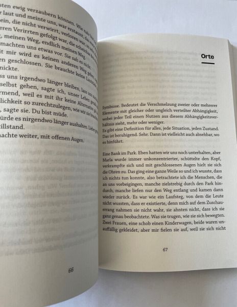 "Zwei junge Frauen treffen in einem Park aufeinander - so beginnt ihre gemeinsame Suche nach dem eigenen Leben. Einem Leben ohne Verpflichtungen, ohne Verzicht, ohne Kompromiss. Dabei wechseln Schlafplätze, Begegnungen und Eindrücke: durchdiskutierte Stunden mit Ian, Marlas Strahlen, Nächte auf den Beinen, Davids Worte, ausgesprochen an einem Ort hoch über der Stadt. Doch führt jedes Suchen zu einem Finden? Eine Geschichte über die Sehnsucht nach Verbindung und Freiheit.