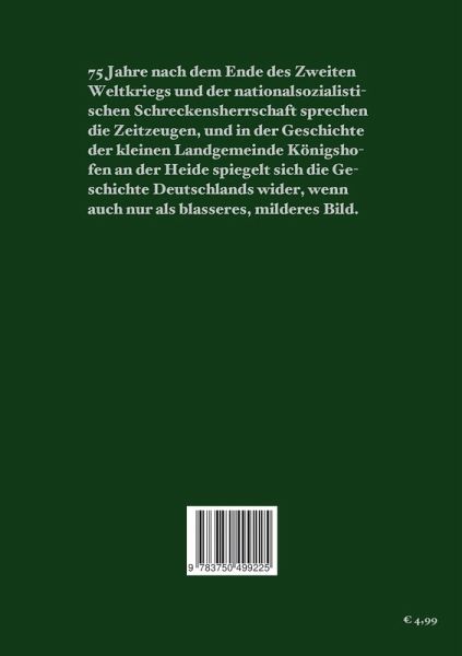 Im Frühjahr 1945 brach die Nazidiktatur endlich zusammen und die Amerikaner brachten den Menschen in Königshofen an der Heide ihre Freiheit zurück. Die letzten Wochen, Tage und Stunden waren aber noch einmal eine große Herausforderung. In diesem schmalen Band sind Zeitzeugenberichte von damals und heute versammelt, die erzählen wie es wirklich war in Königshofen 1945.