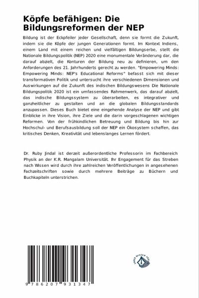 Bildung ist der Eckpfeiler jeder Gesellschaft, denn sie formt die Zukunft, indem sie die Köpfe der jungen Generationen formt. Im Kontext Indiens, einem Land mit einem reichen und vielfältigen Bildungserbe, stellt die Nationale Bildungspolitik (NEP) 2020 eine monumentale Veränderung dar, die darauf abzielt, die Konturen der Bildung neu zu definieren, um den Anforderungen des 21. Jahrhunderts gerecht zu werden. "Empowering Minds: Empowering Minds: NEP's Educational Reforms" befasst sich mit dieser transformativen Politik und untersucht ihre verschiedenen Dimensionen und Auswirkungen auf die Zukunft des indischen Bildungswesens Die Nationale Bildungspolitik 2020 ist ein umfassendes Rahmenwerk, das darauf abzielt, das indische Bildungssystem zu überarbeiten, es integrativer und ganzheitlicher zu gestalten und an die globalen Bildungsstandards anzupassen. Dieses Buch bietet eine eingehende Analyse der NEP und gibt Einblicke in ihre Vision, ihre Ziele und die darin vorgeschlagenen wichtigen Reformen. Von der frühkindlichen Betreuung und Bildung bis hin zur Hochschul- und Berufsausbildung soll der NEP ein Ökosystem schaffen, das kritisches Denken, Kreativität und lebenslanges Lernen fördert.