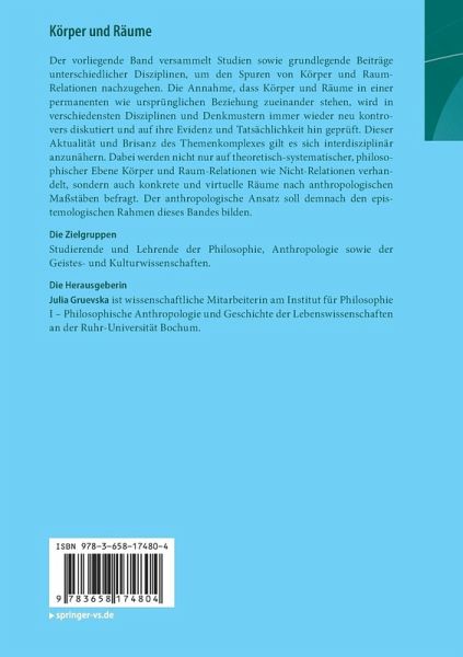 Der vorliegende Band versammelt Studien sowie grundlegende Beiträge unterschiedlicher Disziplinen, um den Spuren von Körper und Raum-Relationen nachzugehen. Die Annahme, dass Körper und Räume in einer permanenten wie ursprünglichen Beziehung zueinander stehen, wird in verschiedensten Disziplinen und Denkmustern immer wieder neu kontrovers diskutiert und auf ihre Evidenz und Tatsächlichkeit hin geprüft. Dieser Aktualität und Brisanz des Themenkomplexes gilt es sich interdisziplinär anzunähern. Dabei werden nicht nur auf theoretisch-systematischer, philosophischer Ebene Körper und Raum-Relationen wie Nicht-Relationen verhandelt, sondern auch konkrete und virtuelle Räume nach anthropologischen Maßstäben befragt. Der anthropologische Ansatz soll demnach den epistemologischen Rahmen dieses Bandes bilden.