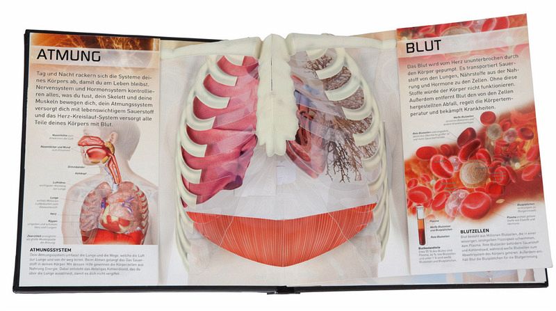 Wie funktioniert der Blutkreislauf und vor allem wie sieht er eigentlich aus? Alles Wissenswerte über den Körper: von den Funktionen der Nervenzellen bis zum Immunsystem. Das komplexe Pop-up-Buch fördert durch anschauliche 3D-Modelle das Verständnis für den Aufbau unseres Körpers. Genau das Richtige für alle, die nicht nur über den Körper lesen, sondern auch ganz plastisch begreifen wollen, wie alles zusammenhängt. Zahlreiche Klappen und Folien bieten Spannung und immer neue, interessante Entdeckungen. Zusätzlich zu den Aufklappelementen sorgt ein Soundeffekt für das ultimative Lese- bzw. Hörerlebnis: beim Aufschlagen des Buches ertönt der der menschliche Herzschlag!
