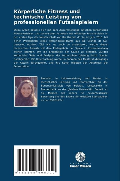 Diese Arbeit befasst sich mit dem Zusammenhang zwischen körperlichen Fitnessvariablen und technischen Aspekten bei offiziellen Futsal-Spielen in der ersten Liga der Meisterschaft von Rio Grande do Sul im Jahr 2015, bei denen Profisportler eines Herren-Futsal-Teams aus Rio Grande do Sul bewertet wurden. Ziel war es auch zu analysieren, welche dieser technischen Aspekte mit dem Endergebnis der Spiele in Zusammenhang stehen könnten. Um die Ergebnisse der Studie zu erhalten, wurden körperliche Tests und Analysen der technischen Leistung durch Scouts durchgeführt. Die Untersuchung wurde im Rahmen des Masterstudiengangs der Autorin durchgeführt, und ihre Daten bildeten den Abschluss der Dissertation.