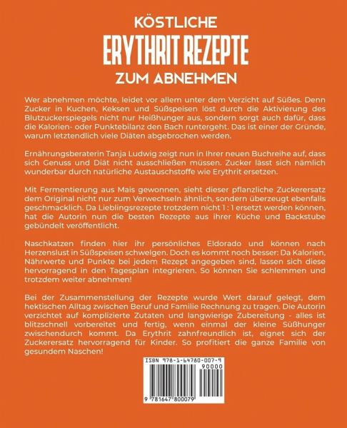 Wenn Sie heutzutage Abnehmen wollen, müssen Sie auf Süßes nicht verzichten! Denn glücklicherweise steht Ihnen mit Erythrit ein natürlicher, gentechnikfreier Zuckerersatz zur Verfügung, der Ihre Diät zu einem kulinarischen Erlebnis werden lässt! Ernährungsberaterin Tanja Ludwig öffnet in diesem Buch ihre persönliche Schatztruhe an Rezepten, die einen Genuss ohne Reue ermöglichen. Sie selbst hat es vor einigen Jahren geschafft, durch den konsequenten Verzicht auf Zucker ihre Idealfigur zu erreichen, zu behalten und dabei sogar noch ihre Zuckersucht zu besiegen. Kuchen, Gebäck und Cremes werden durch die Verwendung von Erythrit nicht mehr zur Last, sondern zur puren Lust, sodass Sie gar nicht mehr merken, dass Sie eigentlich auf Diät sind. Doch was genau ist Erythrit und warum sollten Sie in Ihrer Küche darauf setzen? Erythrit sieht weißem Haushaltszucker zum Verwechseln ähnlich - geschmacklich gibt es im Gegensatz zu vielen anderen Süßstoffen keinen Unterschied. Der natürliche Zuckerersatz hat eine fast so starke Süßkraft wie Kristallzucker und in der Natur kommt Erythrit in zahlreichen Früchten wie Weintrauben, Melonen, aber auch Wein und Käse vor. Der Knaller: Erythrit hat zwanzigmal weniger Kalorien als Haushaltszucker - so macht die schlanke Linie Spaß! Außerdem ist unschädlich für die Zähne und ist daher auch ideal für Kinder. Selbst wenn der Unterschied zwischen Haushaltszucker und Erythrit mit dem Auge nicht zu erkennen ist, gibt es bei der Zubereitung von süßen Speisen und Gebäck einiges zu beachten. So beträgt die Süßkraft von Erythrit im Vergleich zu Zucker nur etwa 70 %, was dazu führt, dass Ihre Lieblingsrezepte nicht 1 : 1 umgewandelt werden können. Mit diesem Buch, das Ihnen abwechslungsreiche Mahlzeiten für alle Tageszeiten liefert, dürften jedoch jede Menge neue Favoriten auf Ihren Speiseplan kommen. Je nachdem, welchem Konzept Sie folgen, können Sie je nach täglicher Kalorien-, Kohlenhydrat- oder Punktemenge nach Herzenslust in süßen Genüssen schwelgen. Das bietet Ihnen das Koch-und Backbuch "Köstliche Erythrit Rezepte zum Abnehmen": eine große Rezeptsammlung für die ganze Familie mit leckeren Vorschlägen für alle Mahlzeiten des Tages - praxisgeprüft und entwickelt von einer Ernährungsberaterin viele Rezepte, die auch Kinderherzen höher schlagen lassen und anspruchsvolle Ehemänner begeistern schnelle Zubereitung und clevere Kombinationen für die abwechslungsreiche Alltagsküche Süßspeisen, deren Genuss garantiert keine Heißhungeranfälle aufkommen lässt exakte Kalorien- und Nährwertangaben zu jedem Rezept Punkteberechnung an jedem Rezept, was die Tagesplanung erheblich erleichtert - Nachrechnen entfällt! Wenn Sie lustvoll und frustfrei naschen möchten und dabei auf ein natürliches Süßungsmittel zurückgreifen wollen, kommen Sie an Erythrit nicht mehr vorbei! Entdecken, staunen und genießen Sie die neue Lust an der Zubereitung süßer Speisen, Kuchen und Cookies! Lassen Sie sich dieses Buch für den Start in Ihr neues, gesundes Leben nicht entgehen und sichern Sie sich noch heute Ihr Exemplar!
