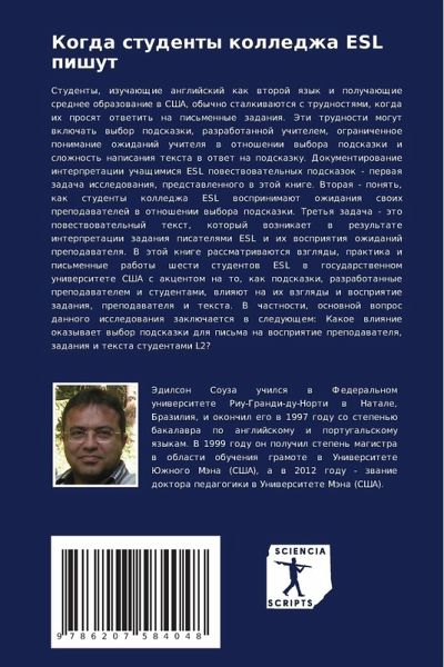 Studenty, izuchaüschie anglijskij kak wtoroj qzyk i poluchaüschie srednee obrazowanie w SShA, obychno stalkiwaütsq s trudnostqmi, kogda ih prosqt otwetit' na pis'mennye zadaniq. Jeti trudnosti mogut wklüchat' wybor podskazki, razrabotannoj uchitelem, ogranichennoe ponimanie ozhidanij uchitelq w otnoshenii wybora podskazki i slozhnost' napisaniq texta w otwet na podskazku. Dokumentirowanie interpretacii uchaschimisq ESL powestwowatel'nyh podskazok - perwaq zadacha issledowaniq, predstawlennogo w ätoj knige. Vtoraq - ponqt', kak studenty kolledzha ESL wosprinimaüt ozhidaniq swoih prepodawatelej w otnoshenii wybora podskazki. Tret'q zadacha - äto powestwowatel'nyj text, kotoryj woznikaet w rezul'tate interpretacii zadaniq pisatelqmi ESL i ih wospriqtiq ozhidanij prepodawatelq. V ätoj knige rassmatriwaütsq wzglqdy, praktika i pis'mennye raboty shesti studentow ESL w gosudarstwennom uniwersitete SShA s akcentom na to, kak podskazki, razrabotannye prepodawatelem i studentami, wliqüt na ih wzglqdy i wospriqtie zadaniq, prepodawatelq i texta. V chastnosti, osnownoj wopros dannogo issledowaniq zaklüchaetsq w sleduüschem: Kakoe wliqnie okazywaet wybor podskazki dlq pis'ma na wospriqtie prepodawatelq, zadaniq i texta studentami L2?