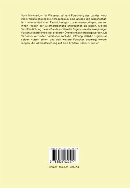 Vom Ministerium fiir Wissenschaft und Forschung des Landes Nordrhein-Westfalen ging die Anregung aus, eine Gruppe von Wissenschaftlern unterschiedlicher Fachrichtungen zu sammenzubringen, urn von ihnen Fragen der Alternsforschung untersuchen zu lassen. Es blieb aber nicht nur bei der Idee. Auf Einladung des Ministeriums hin fanden sich Erziehungswissen schaftler, Psychologen und Soziologen zusammen, deren Forschungsprojekte auf die Dauer von zwei Jahren gef6rdert worden sind. Der hier nun vorgelegte Band enthillt die Darstellungen der Ergebnisse aus fiinf der so gef6rderten Projekte. An der Initiative Alternsforschung des Landes Nordrhein-Westfalen waren noch weitere Wissenschaftler beteiligt. Wegen zusatzlicher Verpflichtungen in den neuen Bundeslandern konnten Professor Dr. Erich E. Geilller, Universitat Bonn, sowie Professor Dr. Eckhard Konig, Universitat-Gesamthochschule Paderborn, die Ergebnisse ihrer Untersuchungen leider nicht zu diesem Band beisteuern. Nachtraglich betrachtet laBt sich feststellen, daB die Initiative mindestens aus der Sicht der beteiligten Wissenschaftler iiberaus positiv zu bewerten ist. Ein auch von auBen erkennbares Indiz dafiir ist die Tatsache, daB die meisten der beteiligten Forscher weiterhin auf dem Gebiet der Alternsforschung tatig sind und weitere Forschungsergebnisse veroffentlichen. Mit der Veroffentlichung dieses Bandes soli en die Ergebnisse der Fachwelt einer breiteren Offentiichkeit vorgelegt werden. Die Verfasser verbinden damit aber auch die Hoffnung, daB die Ergebnisse seiber Nutzen stiften und daB weitere Forscher angeregt werden mogen, die Alternsforschung auf eine breitere Basis zu stell en.