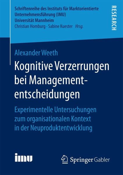 Auf Basis mehrerer experimenteller Untersuchungen analysiert Alexander Weeth verschiedene Managemententscheidungen in der Neuproduktentwicklung auf kognitive Verzerrungen und betrachtet dabei insbesondere den Einfluss des organisationalen Kontexts. Er zeigt, dass die Abteilungszugehörigkeit eines Managers einen Einfluss auf Projektfortführungsentscheidungen hat und dass die organisationale Position einer Informationsquelle maßgeblich die Beurteilung ihrer Prognosen beeinflusst.