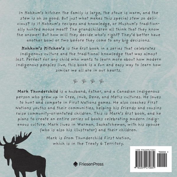 In Kohkum's kitchen the family is large, the stove is warm, and the stew is oh so good. But just what makes this special stew so delicious? Is it Kohkum's recipes and knowledge, or Mushum's traditionally hunted moose meat? The grandchildren all think that they know the answer! But how will they decide who's right? They'd better have another bowl or two before they come to any big decisions. Kohkum's Kitchen's is the first book in a series that celebrates Indigenous culture and the traditional knowledge that was almost lost. Perfect for any child who wants to learn more about how modern Indigenous peoples live, this book is a fun and easy way to learn how similar we all are in our hearts.