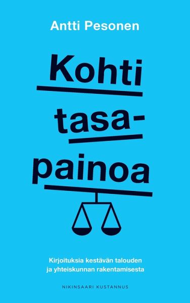 Kohti tasapainoa kiteyttää vuonna 2017 kuolleen Antti Pesosen yhteiskunnallista ajattelua, jolle on ominaista paitsi kritiikki eli asioiden kattava punnitseminen, myös vaihtoehtojen esittäminen. Teos pitää sisällään kirjoittajansa valikoimia tekstejä vuosien 2005 ja 2016 väliltä. Kohti tasapainoa käsittelee maailmanlaajuisten demokratian, talousjärjestelmän ja ympäristön kriisien yhteenkietoutumista ja niiden ilmentymiä Euroopan unionin ja Suomen mittakaavassa. Ratkaisun avaimet löytyvät demokraattisen järjestelmän korjaamisesta kansallisvaltioiden tasolla. Itsenäisyyspuolueen pitkäaikaisena puheenjohtajana toiminut Antti Pesonen toteaa, että edellä mainitut kriisit eivät ole tulossa, vaan parhaillaan käynnissä - eikä niitä voida kestävästi ratkaista soveltamalla samoja ajatusmalleja, jotka ne ovat synnyttäneet. Vanhoissa kaavoissa pysyttäytyminen johtaa vain uusiin ja entistä syvempiin ongelmiin mahdollisen suvantovaiheen jälkeen. Kohti tasapainoa on osin kriittistä kertausta lähimenneisyyden politiikasta, mutta samalla myös pelottavan ajankohtainen katsaus niihin pohjavirtoihin, joiden vaikutus tulee näkyviin vasta pidemmällä aikavälillä. Esimerkiksi Yhdysvaltalaisilta konsulttiyhtiöiltä tilattujen hallitusohjelmaluonnosten täysi merkitys on tullut selväksi vuosikymmenen viiveellä. Antti Pesosen ajattelussa kansallisvaltion merkitys on sen tarjoama suoja ulkoista poliittista ja taloudellista riistoa kohtaan. Hän kannatti puolueettomuuspolitiikkaa ja Suomen eroamista Euroopan unionista. Pesonen varoitteli euroalueeseen kuulumisen riskeistä jo vuosia ennen talouskriisin alkua. "Hyvä yhteiskunta pyrkii oikeudenmukaisuuteen ja yhteiskunnallisten jännitteiden vähentämiseen. Hyvä yhteiskunta pyrkii löytämään tasapainon ihmisen ja luonnon välille. Hyvässä yhteiskunnassa ovat suuressa arvossa totuuden tavoittelu ja väkivallan vastustaminen. Käytännössä hyvän yhteiskunnan tulee olla suuri tavoite, jota kohti pyritään. Täydellisyyteen tuskin päästään, mutta suunta on hyvin tärkeä."