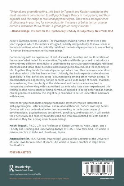 Kohut's Twinship Across Cultures: The Psychology of Being Human chronicles a 10-year-voyage in which the authors struggled, to make sense of Kohut's intentions when he radically re-defined the twinship experience to one of "being human among other human beings".