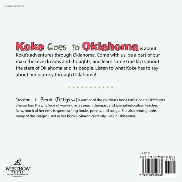 Koke Goes to Oklahoma is about Koke's adventures through Oklahoma. Come with us, be a part of our make-believe dreams and thoughts, and learn some true facts about the state of Oklahoma and its people. Listen to what Koke has to say about her journey through Oklahoma!