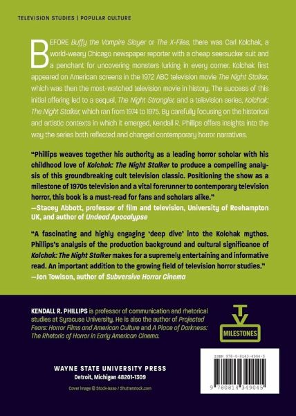 Before Buffy the Vampire Slayer or The X-Files, there was Carl Kolchak, a world-weary Chicago newspaper reporter with a cheap, seersucker suit and a penchant for uncovering monsters lurking in every corner. Kolchak first appeared on American screens in the 1972 ABC television movie The Night Stalker, which was then the most-watched television movie in history. The success of this initial offering led to a sequel, The Night Strangler, and a television series, Kolchak: The Night Stalker, that ran from 1974 until 1975. By carefully focusing on the historical and artistic contexts in which it emerged, Kendall R. Phillips offers insights into the way the series both reflected contemporary horror narratives and changed them. Ultimately, the series proved influential for later television horror shows based not only on what it did right but on the mistakes future creators would learn to avoid. The enduring impact of the series on current television horror continues to draw more and more individuals into its robust fanbase, and these fans continue to consume and create new narratives of their favorite monster-hunting reporter even fifty years after he first appeared.