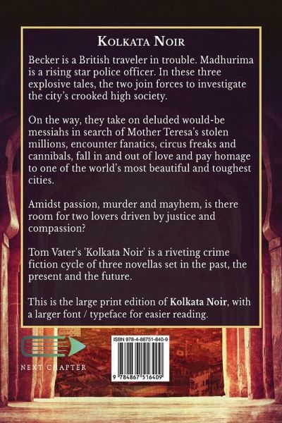 Becker is a British traveler in trouble. Madhurima is a rising star police officer. In these three explosive tales, the two join forces to investigate the city's crooked high society. On the way, they take on deluded would-be messiahs in search of Mother Teresa's stolen millions, encounter fanatics, circus freaks and cannibals, fall in and out of love and pay homage to one of the world's most beautiful and toughest cities. Amidst passion, murder and mayhem, is there room for two lovers driven by justice and compassion? Tom Vater's 'Kolkata Noir' is a riveting crime fiction cycle of three novellas set in the past, the present and the future. This is the large print edition of Kolkata Noir, with a larger font / typeface for easier reading.¿