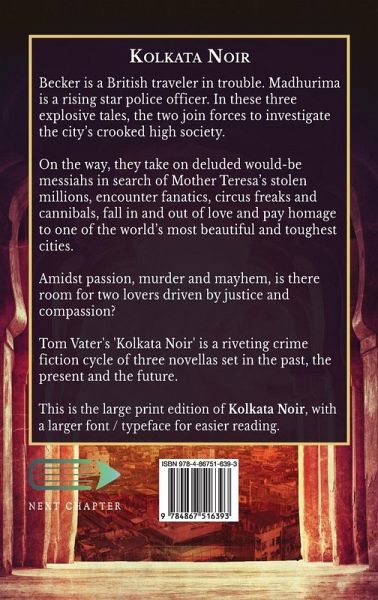 Becker is a British traveler in trouble. Madhurima is a rising star police officer. In these three explosive tales, the two join forces to investigate the city's crooked high society. On the way, they take on deluded would-be messiahs in search of Mother Teresa's stolen millions, encounter fanatics, circus freaks and cannibals, fall in and out of love and pay homage to one of the world's most beautiful and toughest cities. Amidst passion, murder and mayhem, is there room for two lovers driven by justice and compassion? Tom Vater's 'Kolkata Noir' is a riveting crime fiction cycle of three novellas set in the past, the present and the future. This is the large print edition of Kolkata Noir, with a larger font / typeface for easier reading.¿