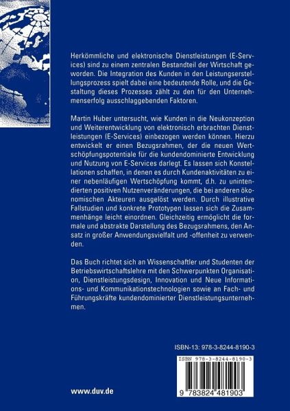 Martin Huber untersucht, wie Kunden in die Neukonzeption und Weiterentwicklung von elektronisch erbrachten Dienstleistungen (E-Services) einbezogen werden können. Hierzu entwickelt er einen Bezugsrahmen, der die neuen Wertschöpfungspotentiale für die kundendominierte Entwicklung und Nutzung von E-Services darlegt. Es lassen sich Konstellationen schaffen, in denen es durch Kundenaktivitäten zu einer nebenläufigen Wertschöpfung kommt, d.h. zu unintendierten positiven Nutzenveränderungen, die bei anderen ökonomischen Akteuren ausgelöst werden. Durch illustrative Fallstudien und konkrete Prototypen lassen sich die Zusammenhänge leicht einordnen. Gleichzeitig ermöglicht die formale und abstrakte Darstellung des Bezugsrahmens, den Ansatz in großer Anwendungsvielfalt und -offenheit zu verwenden.
