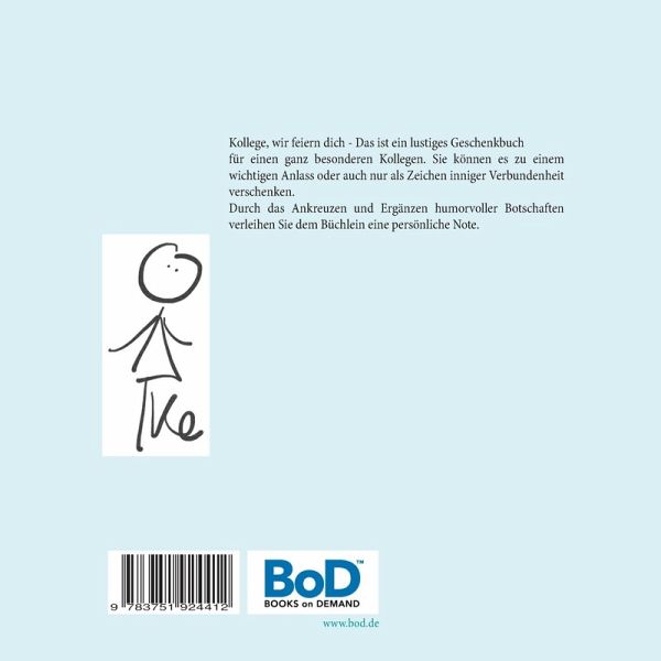 Kollege, wir feiern dich - Das ist ein lustiges Geschenkbuch für einen ganz besonderen Kollegen. Sie können es zu einem wichtigen Anlass oder auch nur als Zeichen inniger Verbundenheit verschenken.Durch das Ankreuzen und Ergänzen humorvoller Botschaften verleihen Sie dem Büchlein eine persönliche Note.
