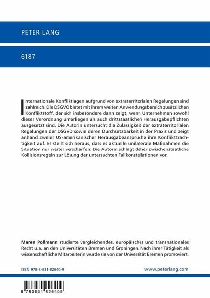 Internationale Konfliktlagen aufgrund von extraterritorialen Regelungen sind zahlreich. Die DSGVO bietet mit ihrem weiten Anwendungsbereich zusätzlichen Konfliktstoff, der sich insbesondere dann zeigt, wenn Unternehmen sowohl dieser Verordnung unterliegen als auch drittstaatlichen Herausgabepflichten ausgesetzt sind. Die Autorin untersucht die Zulässigkeit der extraterritorialen Regelungen der DSGVO sowie deren Durchsetzbarkeit in der Praxis und zeigt anhand zweier US-amerikanischer Herausgabeansprüche ihre Konfliktträchtigkeit auf. Es stellt sich heraus, dass es aktuelle unilaterale Maßnahmen die Situation nur weiter verschärfen. Die Autorin schlägt daher zwischenstaatliche Kollisionsregeln zur Lösung der untersuchten Fallkonstellationen vor.