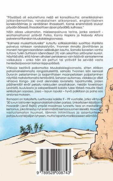 Uskomattoman, mieleenpainuvan tarinan sankarit, erottamattomat ystävät Potka, Kanto Hopkins ja Nobody Alfons palvelevat Ranskan Muukalaislegioonassa. Kolmeksi muskettisotureiksi kutsuttu sotilas-kolmikko suorittaa ritarillista palvelua rohkean ranskalaistytön, Yvonnen rinnalla jännittävien ja monesti hengenvaarallisten seikkailujen kautta. Samalla kaverien vanha tuttava Turkin Sulttaani näennäisesti vain sekoittaa ystävysten kuviot. Näyttää siltä, että hänen alhaiset petoksensa vain lisäävät sankariemme vaikeuksia. Onko hän siis petturi tai ystävä? Se selviää vasta henkeäsalpaavan tarinan loppupäässä. Viikkoja kestävä pakomatka Muukalaislegioonasta, sitten Afrikan pahamaineisimmalta rangaistusleiriltä, samalla Yvonnen isän, kenraalin pelastaminen ja laajamittaisen maanpetoksen paljastaminen näyttää mahdottomalta tehtävältä. Saharan autiomaa, viidakko ja villisti virtaava Kongo- joki ovat olennaiset lavasteet tapahtumille, joiden päähenkilöt eivät pelastu rakkauden ansaltakaan. Heidän toveristaan, kuuluisasta ja salaperäisestä kokista tulee tärkeä mauste tässä sopassa, jossa lopuksi hyvä palkitaan ja paha saa ansionsa mukaan.