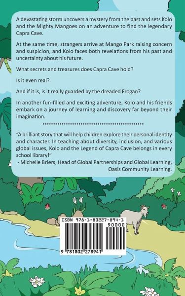 A devastating storm uncovers a mystery from the past and sets Kolo and the Mighty Mangoes on an adventure to find the legendary Capra Cave. At the same time, strangers arrive at Mango Park raising concern and suspicion, and Kolo faces both revelations from his past and uncertainty about his future. What secrets and treasures does Capra Cave hold? Is it even real? And if it is, is it really guarded by the dreaded Frogan? In another fun-filled and exciting adventure, Kolo and his friends embark on a journey of learning and discovery far beyond their imagination. "A brilliant story that will help children explore their personal identity and character. In teaching about diversity, inclusion, and various global issues, Kolo and the Legend of Capra Cave belongs in every school library!" - Michelle Briers, Head of Global Partnerships and Global Learning, Oasis Community Learning.
