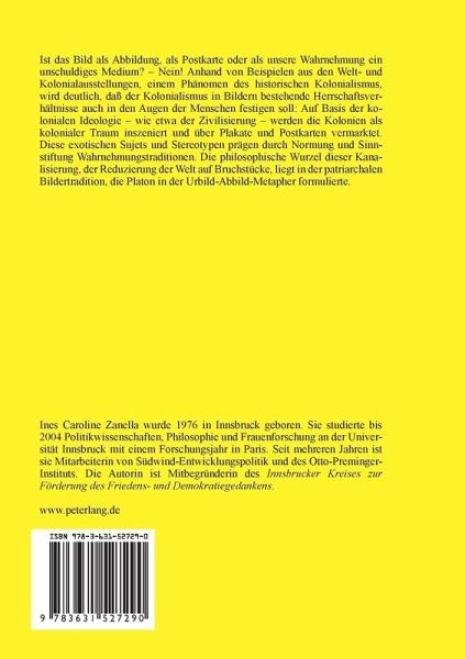 Ist das Bild als Abbildung, als Postkarte oder als unsere Wahrnehmung ein unschuldiges Medium? - Nein! Anhand von Beispielen aus den Welt- und Kolonialausstellungen, einem Phänomen des historischen Kolonialismus, wird deutlich, daß der Kolonialismus in Bildern bestehende Herrschaftsverhältnisse auch in den Augen der Menschen festigen soll: Auf Basis der kolonialen Ideologie - wie etwa der Zivilisierung - werden die Kolonien als kolonialer Traum inszeniert und über Plakate und Postkarten vermarktet. Diese exotischen Sujets und Stereotypen prägen durch Normung und Sinnstiftung Wahrnehmungstraditionen. Die philosophische Wurzel dieser Kanalisierung, der Reduzierung der Welt auf Bruchstücke, liegt in der patriarchalen Bildertradition, die Platon in der Urbild-Abbild-Metapher formulierte.