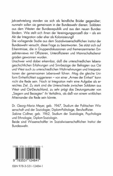 Jahrzehntelang standen sie sich als feindliche Brüder gegenüber, nunmehr sollen sie gemeinsam in der Bundeswehr dienen: Soldaten aus dem Westen der Bundesrepublik und aus den neuen Bundesländern. Wie stellt sich ihnen der Vereinigungsprozeß dar - als ein Akt der Integration oder eher als Kolonisierung?Diese Studie aus dem Sozialwissenschaftlichen Institut der Bundeswehr versucht, diese Frage zu beantworten. Sie stützt sich auf Erkenntnisse, die in Gruppendiskussionen und themenzentrierten Einzelinterviews mit Offizieren, Unteroffizieren und Mannschaftsdienstgraden gewonnen wurden.Unschwer wird dabei erkennbar, daß die unterschiedlichen lebensgeschichtlichen Erfahrungen und Sinnbezüge der Befragten aus Ost und West auch zu unterschiedlichen Wahrnehmungen und Interpretationen der gemeinsamen Lebenswelt führen. Mag die gleiche Uniform Einheitlichkeit suggerieren - von einer "Armee der Einheit" kann nicht die Rede sein. Noch ist Integration mehr eine Aufgabe als erreichtes Ziel. Zu stark sind die Unterschiede zwischen Soldaten aus West- und Ostdeutschland, zu sehr prägt das Deutungsmuster von "Siegern und Besiegten" ihr Verhältnis, als daß von einem wirklichen Miteinander die Rede sein könnte.