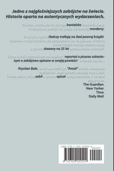 Pewien wroc¿awianin zostaje bestialsko zamordowany. Pocz¿tkowo policji nie udaje si¿ znale¿¿ mordercy. Po pi¿ciu latach ¿ledczy trafiaj¿ jednak na ¿lad pewnej ksi¿¿ki. Opisane w niej morderstwo przypomina policjantowi star¿ spraw¿. Wkrótce autor ksi¿¿ki zostaje aresztowany, a potem skazany na 25 lat pozbawienia wolnöci. Kiedy m¿ody dziennikarz ma napisä "reportä o pisarzu oskar¿onym o zabójstwo opisane w swojej powie¿ci" okazuje si¿, ¿e.... Jedno z najg¿öniejszych zabójstw na ¿wiecie. Historia oparta na autentycznych wydarzeniach. Krystian Bala, autor powie¿ci pt. "Amok" zostä skazany za zabójstwo. Jego historia obieg¿a cäy ¿wiat. O cz¿owieku, który zabi¿ a potem opisä swoj¿ zbrodni¿ w ksi¿¿ce pisäy m.in. The Guardian, New Yorker, Time, Daily Mail.
