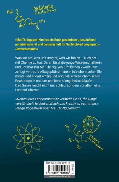 Chemie ist alles - was wir tun, was uns umgibt, was wir fühlen, alles hat mit Chemie zu tun. Glauben Sie nicht? Dr. Mai Thi Nguyen-Kim tritt in diesem spannenden Pop-Science-Buch den munteren Beweis an und zerlegt Alltagsphänomene in ihre chemischen Elemente. Witzig und originell erklärt sie, welche chemischen Reaktionen in und um uns herum insgeheim ablaufen, und macht vor allem eins: Lust auf Chemie.