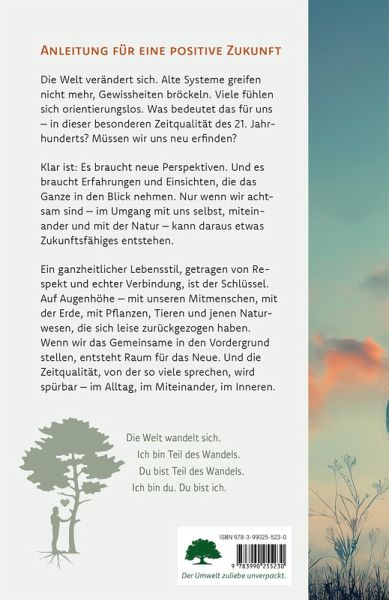 In einer Welt im Wandel greifen alte Systeme nicht mehr. Gewissheiten bröckeln - viele Menschen fühlen sich orientierungslos. Was bedeutet diese Zeitqualität für uns heute? Die Antwort liegt in der Suche nach neuen Perspektiven, echter Achtsamkeit und einer tiefen Verbindung mit uns selbst, unseren Mitmenschen und der Natur. Ein ganzheitlicher Lebensstil, geprägt von Respekt und bewusstem Miteinander, kann Orientierung und Sinn stiften. In einer Zeit, in der Veränderungen allgegenwärtig sind, braucht es Erfahrungen und Einsichten, die das große Ganze in den Blick nehmen. Nur wenn wir uns neu ausrichten - auf Augenhöhe mit der Erde, mit Pflanzen, Tieren und den oft vergessenen Naturwesen - entsteht Raum für etwas wirklich Zukunftsfähiges. Diese besondere Zeitqualität lässt sich im Alltag spüren: im Miteinander, im Inneren, im bewussten Leben. Wer das Gemeinsame betont und neue Wege geht, gestaltet aktiv eine lebenswerte Zukunft.