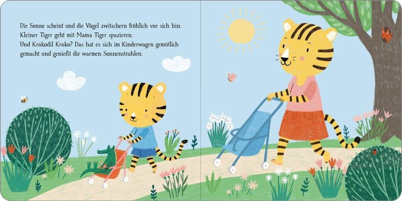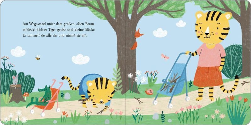 Kleiner Tiger geht mit Mama Tiger spazieren. Die Sonne scheint und die Vögel zwitschern fröhlich. Am Wegesrand unter dem großen Baum entdeckt kleiner Tiger große und kleine Stöcke. Er sammelt sie ein und nimmt sie mit. Was kleiner Tiger während seines Spaziergangs wohl noch entdecken wird? Dieses Pappbilderbuch erzählt alltagsnah und mit einem Augenzwinkern eine allererste Geschichte vom Entdeckungsspaziergang des kleinen Tigers. Für alle kleinen Alltagshelden ab 12 Monaten!